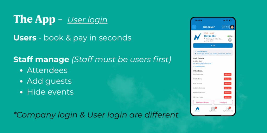 Great for Staff members, understand that the mobile app will need a separate login. It is not the same as the Company backend.